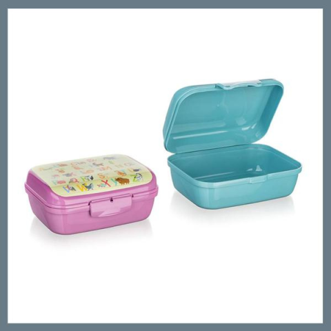BANQUET LETTERS uzsonnás doboz 16 x 12 x 6,5 cm 55079759Ez a praktikus és könnyű uzsonnás doboz tökéletes választás gyermekek számára, hogy az ételek mindig frissen és biztonságosan tárolva maradjanak.PARAMÉTEREKSzín: Rózsaszín / Zöld (vegyes színek)A szín nem választható, véletlenszerűen kerül kiküldésre!Dekor: MixMéret: 16 × 12 × 6,5 cmAnyag: MűanyagBruttó súly: 0,060 kgNettó súly: 0,058 kg