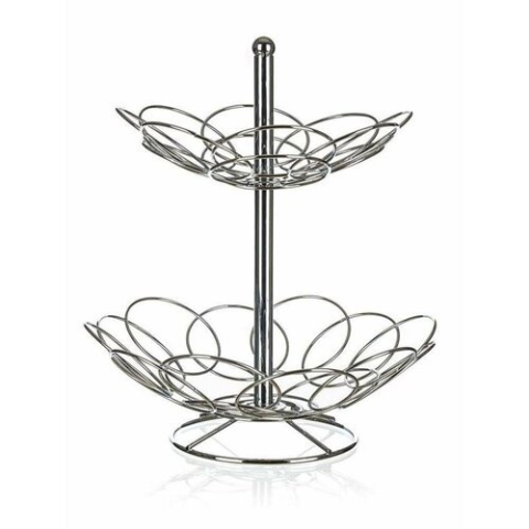Ez a LINEA drótállvány egy kétszintes állvány elegáns formáját ötvözi a minőségi acélhuzalokkal, amelyek könnyen rögzíthetők. Nagyon szépen néz ki, és nemcsak gyümölcsöket és zöldségeket tárolhat benne. Mindent kéznél és jól látható helyen tarthat.A mérete 30 x 33 cm.