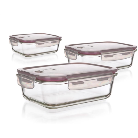 Banquet LORA 550 + 950 + 1450 ml üvegedény készlet fedővel, bordó (A26085) uzsonnás doboz árgrafikon
