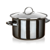 Fazék - zománcozott belső felület, alkalmas gáz, elektromos, indukciós és üvegkerámia főzőlaphoz, alakja kerek, 3,7 l-es kiszerelés, zománc fogantyúval, megerősített fenekű, mérce, 11 cm magas, átmérője 24 cm, fedő is a csomag része, fekete színben A BANQUET METALLIC zománcozott fazék elegáns fekete metál kivitelével tűnik ki. A zománcozott felület ellenálló és könnyen tisztítható, ugyanakkor klasszikus megjelenést kölcsönöz a fazéknak modern be
