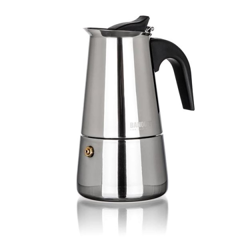 Kotyogós kávéfőző - tűzhelyre, melegítés típusa gáz, áram és üvegkerámia, űrtartalma 200 ml, kapacitása egy melegítésre 4 csésze, indukciós, anyaga rozsdamentes acél, ezüst kivitel A híresen megbízható Banquet mokkafőzőjében készült erős feketével kellemesen indul majd a reggel. Ennek az olaszos kávéfőzőnek a segítségével finom kávét készíthetsz, dizájnos formájának hála pedig a