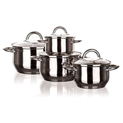 Edénykészlet - gáz, elektromos, indukciós és üvegkerámia főzőlaphoz, 4 fazék a készletben, mosogatógépben mosható, edény anyaga rozsdamentes acél, fazék külső felülete rozsdamentes acél, fazék belső felület rozsdamentes acél, fazék nyelének anyaga rozsdamentes acél, ezüst kivitel A régi edényeid már az utolsókat rúgják? Akkor szerezd be ezt a rozsdamentes acél BANQUET Modena nevű edénykészletet, amely négy fazekat tartalmaz fedővel, és garantáltan megfe