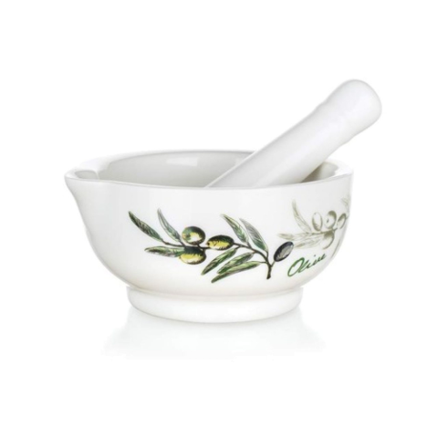 Az OLINES mozsár remek segítség az alapanyagok, fűszerek, ízesítőkeverékek, peszto stb.őrlésére és porítására. Méretek: átmérő 11,5 cm, magasság 6 cm. Szín: Fehér / zöld Anyag: Kerámia Mosogatógép: Nem Súlya: 570 gramm