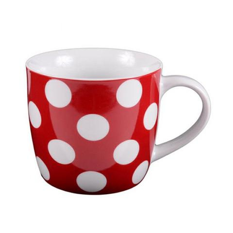 A vidám, piros színű, fehér pöttyökkel díszített kerámia bögre nemcsak a reggeli kávé vagy tea mellé alkalmas. Ideális bögre méret az összes kedvenc ital elkészítéséhez. Alsó átmérő: 7 cm