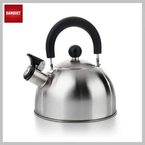 BANQUET Rozsdamentes vízforraló FLAVIO ÚJ 1,7 l 48760085LEÍRÁSA FLAVIO NEW 1,7 literes rozsdamentes acél vízforraló minden háztartás szerves része. 201-es rozsdamentes acélból készült, vastagsága 0,33 mm, alja 18/0, összecsukható fogantyú - fekete nylon műanyag. A vízforraló hangjelzéssel van felszerelve, amikor a víz felforr – a beépített síp jelzi, ha elérte a forráspontot. A vízforraló minden típusú főzőlapon használható, beleértve az indukciós főzől