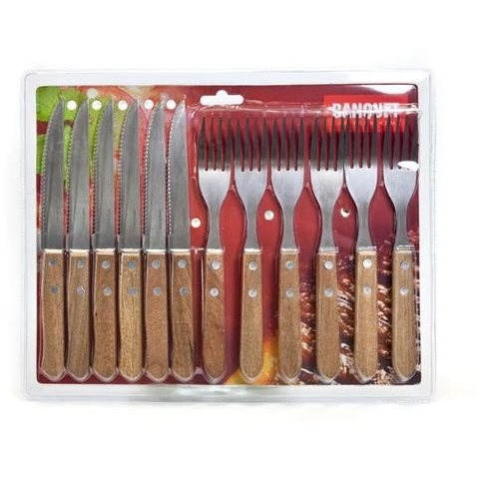 Evőeszközkészlet - steak kés és steak villa, fogazott penge, 12 db A steak eszközök ideálisak a steakek, grillezett hús vagy pizza gyors szeleteléséhez. A kések olyan foggakkal rendelkeznek, amelyek könnyebbé teszik a szeletelést. A készlet kiváló m