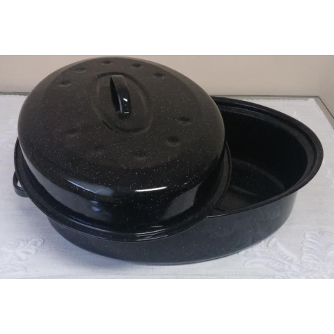 - Hagyományos zománcozott fekete kacsasütő - Használható gáz, elektromos, kerámia, indukciós tűzhelyen, és fatüzelésű kályhán - A terméket kétszer zománcozzák, így kiváló a minősége - Mosogatógépben tisztítható - Anyaga: préselt vas lemez - Méret: 38cm -