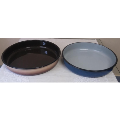 A forma zománcozott acéllemezből készült. A dupla zománcozás biztosítja a kíváló minőséget. Mosogatógépben mosható. Méret: Ø 34 cm, magasság: 5,5 cm Szín: barna átmenetes, kék
