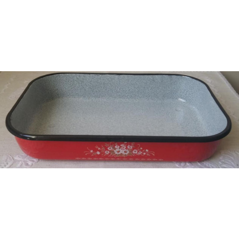 TEPSI MÁRVÁNYOZOTT 40 CM 141M/40 A füles tepsi anyaga zománcozott acéllemez. A tepsi kívül-belül zománc bevonattal rendelkezik, belseje márványozott mintával. A kiváló minőségről a dupla zománcozás gondoskodik. Mosogatógépben mosható. Szín: piros, v