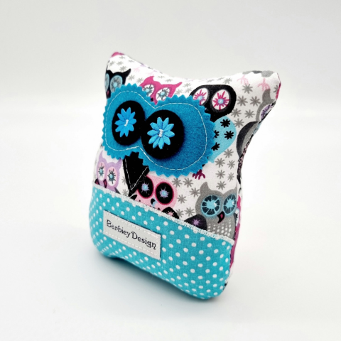 Bagoly Levendulás Álompárna Méret: kicsi (10 cm széles × 13 cm magas) Anyaga: bagoly mintás pamutvászon, türkisz kék alapon, fehér színű pöttyös mintás pamutvászon, szeme, orra dekorfilc Töltet: 100 % poliészter, levendula Tisztítás: 30°-on kímélő program