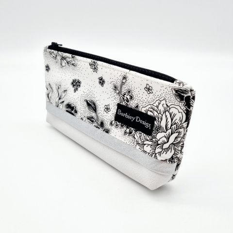 Igazán praktikus méretű Happy Big Női Pénztárca Méret: 19 cm x 10 cm x 2 cm Tisztítás: 30°-on mosózsákban mosható mosógépben Anyaga, színe: fehér színű alapon, fekete virág mintás pamutvászon, fehér és ezüst textilbőr A Happy Big Női Pénztárc