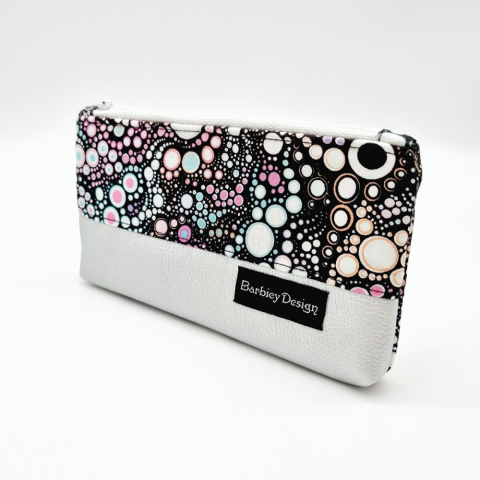 Igazán praktikus méretű Happy Big Női Pénztárca Méret: 19 cm x 10 cm x 2 cm Tisztítás: 30°-on mosózsákban mosható mosógépben Anyaga, színe: fekete színű alapon, színes buborék mintás pamutvászon, ezüst színű textilbőr A termék amennyiben nincs készleten,