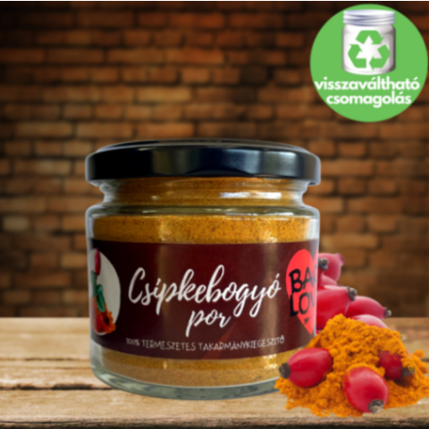 A csipkebogyó por természetes C-vitamin forrás kutyák számára, valamint fokozza a kollagén, gyógynövények hatását, így fontos kiegészítője lehet egy-egy gyógynövény-, ízületi kúrának is.