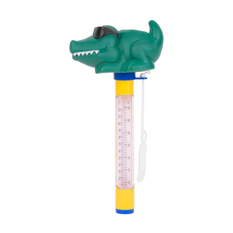 Az aligátor úszó hőmérő minden medencét különlegessé tesz, és pontosan méri a víz hőmérsékletét. A medencéhez kötéllel van rögzítve, hogy a helyén maradjon. A hőmérő Celsius- és Fahrenheit-fokban mutatja az értékeket.