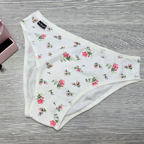 Barones normál bugyi széles oldalú ecrü virág mintás