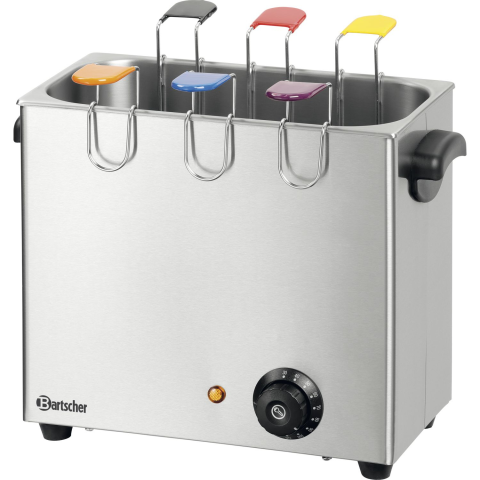 Anyag: Rozsdamentes acél1 medence, medence térfogata: 4 literMedence méretei: Szélesség 301 x Mélység 152 x Magasság 200 mmTojás tartó: 6 különálló tartó, színkódolt,Tojás méret: kicsi, közepesTojás tartó eltávolíthatóHőmérséklet tartomány: 30 °C-tól 110 °C-igHőmérséklet szabályozás: 10 °C-kéntHőmérsékletszabályozóBiztonsági hőmérsékletszabályozóRobosztus rozsdamentes acél fűtőelem, rögzített telepítés Magasság: 290 mm Szélesség: 365 mm
