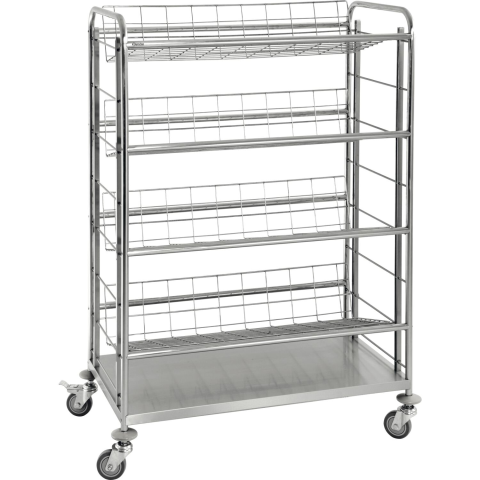 Anyag: Króm-nikkel acélMax. befogadóképesség: 8 szabványos italos láda (400 x 300 mm)Rácsos polcok száma: 4Rácsos polcok méretei: Szé 1000 x Mé 360 mmRácsos polcok magassága: 220 mmTávolság a rácsos polcok között: 345 mmÖsszes terhelhetőség, max.: 120 kgForgó kerekek: 4 forgókerék, 2 rögzíthetőKerekek átmérője: 125 mmKeréktámasz: 4 db, műanyagSzállítási állapot: Szerelvény (egyszerű összeszerelés) Magasság: 1610 mm Szélesség: 1080 mm Mélység: 570 m