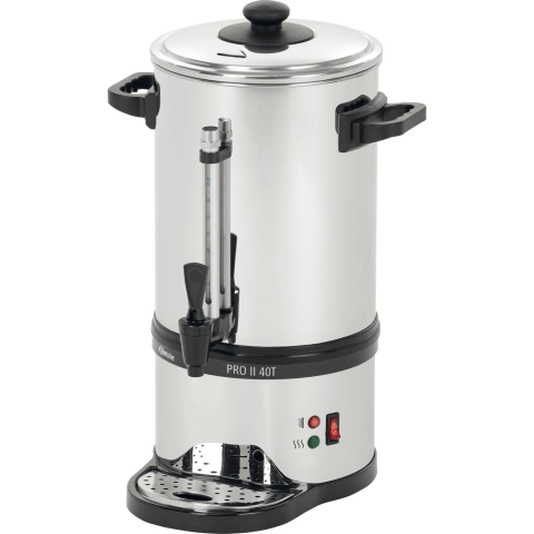 »PRO Plus II 40T«Anyag: rozsdamentes acél, műanyagSzűrő anyaga: rozsdamentes acél, fűtőrendszer anyaga: rozsdamentes acélKivitel: körszűrőMaximális kapacitás: 40-48 csészeMinimális főzési mennyiség: 3 liter (20 csésze)Főzési idő: 40 perc 6 literhezVízmennyiség-jelzőVízkőmentesítési jelzésA kávéfőző papírfilter nélkül is használható2 különálló fűtőrendszer a főzéshez és a melegen tartáshoz