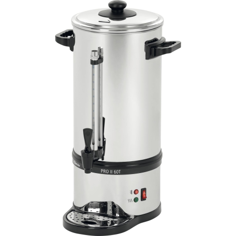 »PRO Plus II 60T«Anyag: rozsdamentes acél, műanyagSzűrő anyaga: rozsdamentes acél, fűtőrendszer anyaga: rozsdamentes acélKivitel: körszűrőMaximális kapacitás: 60-72 csészeMinimális főzési mennyiség: 4,5 liter (30 csésze)Főzési idő: 50 perc 9 literhezVízmennyiség-jelzőVízkőmentesítési jelzésA kávéfőző papírfilter nélkül is használható2 különálló fűtőrendszer a főzéshez és a melegen tartáshoz
