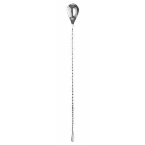 Rozsdamentes acélból készült. A spirális fogantyú elősegíti a gyorsabb keveredést, a precíz rétegezést és a szódabikarbónát szálkásodás nélkül. A könnycsepp hegy ellensúlyként szolgál, amely második keverőként is használható. A kanál 5 ml összetevő mérésé