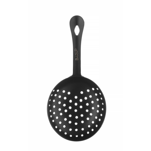 Rozsdamentes acélból készült. Nagy jégdarabok, gyümölcsök és fűszernövények megerőltetésére a legalkalmasabb. A markolaton fűzőlyuklal. Fekete porbevonat. Nem mosogatógépben mosható.