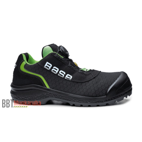 Base S1P munkavédelmi cipő, microfibre felsőrésszel, BOA-technológiás fűzőmegoldással, ESD tulajdonsággal. Kompozit orrvédelemmel és kompozit talpátszúrás elleni védelemmel ellátott, ütéscsillapítás a saroknál. A minél nagyobb tartósság érdekében orrborít