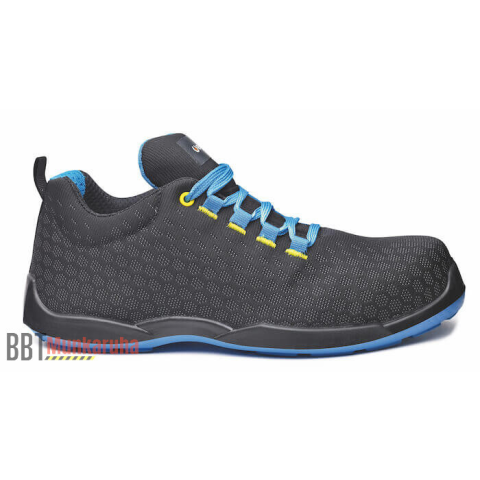 Base S3 munkavédelmi cipő magasabb vízálló képességű technikai textil felsőrésszel. Kompozit orrvédelemmel és kompozit talpátszúrás elleni védelemmel ellátott, ütéscsillapítás a saroknál. Antisztatikus és szénhidrogéneknek ellenálló egyedi kialakítású tal