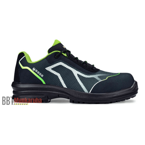 Base S3 munkavédelmi cipő magasabb vízálló képességű technikai textil felsőrésszel. Kompozit orrvédelemmel és kompozit talpátszúrás elleni védelemmel ellátott, ütéscsillapítás a saroknál. Antisztatikus és szénhidrogéneknek ellenálló egyedi kialakítású tal