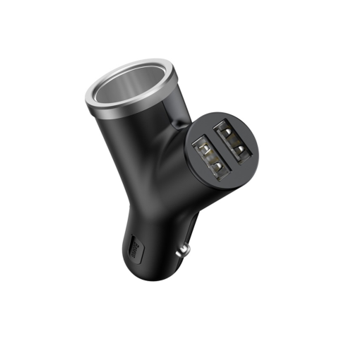 Autós töltő, 2xUSB-A, 5V, 3,4A, 17W, 1xSzivargyújtó csatlakozó, Black