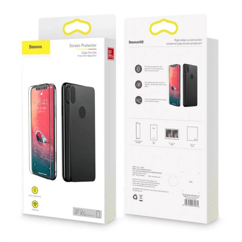 1 kép Baseus Apple iPhone XR Baseus Front+Back Üvegfólia Set - Fekete