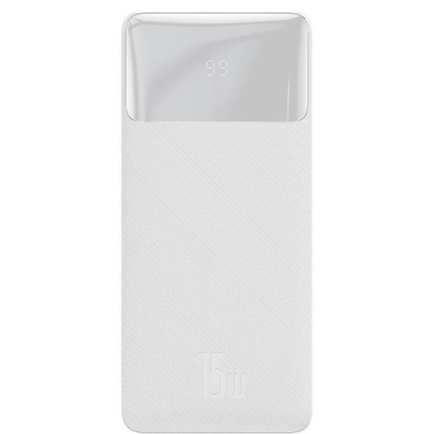 PowerBank Baseus Bipow 20000mAh, 2xUSB, USB-C, 15W (fehér)Előfordult már, hogy a legrosszabb pillanatban merült le a telefonod? Ennek a modellnek a PowerBankja orvosolhatja ezt. Utazáskor csak csatlakoztatni kell a készüléket a telefonhoz. Egyszerre akár három készülék is tölthető. Kapacitása 20 000 mAh, kimeneti teljesítménye pedig 15 W. LCD kijelzővel van felszerelve, amely lehetővé teszi a PowerBank töltöttségi szintjének nyomon követését. A Type-C porton és a Mic