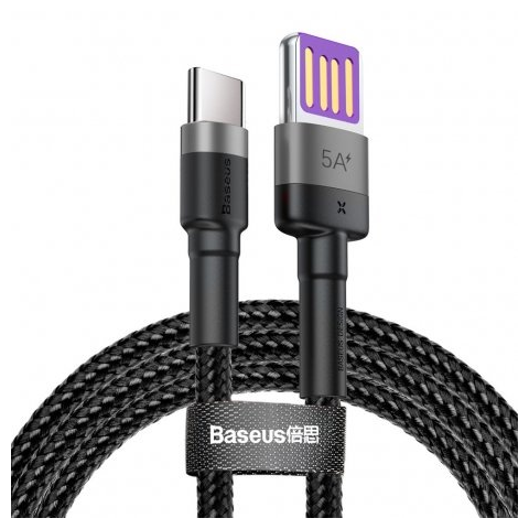 Baseus Cafule USB-USB-C kábel Huawei SuperCharge, QC 3.0, 5A 1m (fekete-szürke) A Baseus Huawei 5A-hoz készült USB-C kábel ideális választás a Huawei okostelefonok gyors töltéséhez és adatátviteléhez. Kiváló minőségű, strapabíró anyagokból készült, amelye