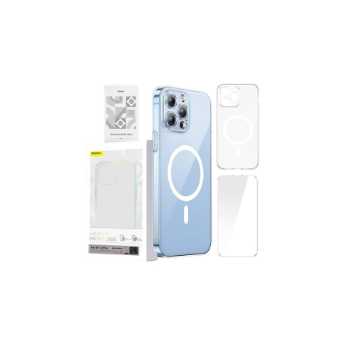 Baseus Crystal Clear mágneses telefontok iPhone 13 Pro (átlátszó), edzett üvegfólia + tisztító készlet