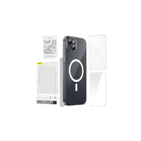 Baseus Crystal Clear mágneses telefontok iPhone 13 (átlátszó), edzett üvegfólia + tisztítókészlet