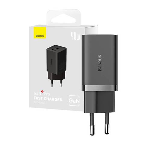 Baseus GaN5 2xUSB-C hálózati töltő 40W fekete (CCGP180101) (CCGP180101)