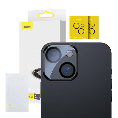 Baseus kameralencse fólia iPhone 13/13 Minihez (2db) A Baseus edzett üvegfólia ideális védelmet biztosít az iPhone 13 és 13 Mini készülékek kamerájának. A rendkívül vékony, mindössze 0,3 mm vastag üvegfólia erős védelmet nyújt a karcolások és sérülések el