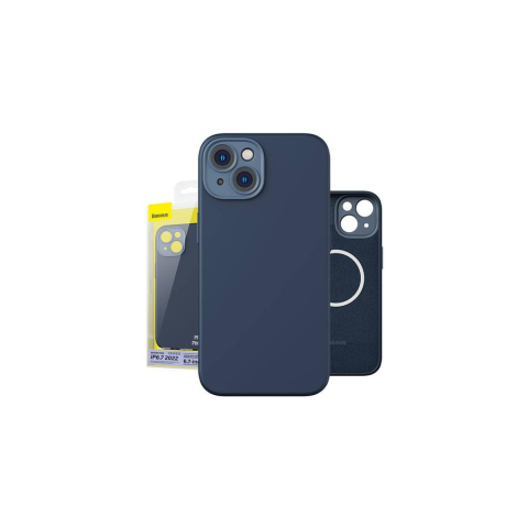 1 kép Baseus Liquid Silica iPhone 14 Plus Átlatszó mágneses tok + üvegfólia (kék)