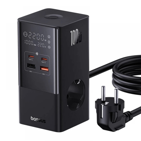 Asztali hosszabbító 2x USB-A és 2x USB-C gyorstöltős csatlakozókkal.