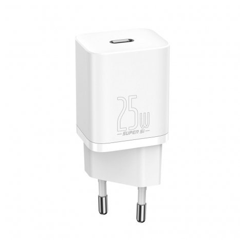 Baseus Super Si hálózati töltő adapter USB-C 25W PD QC, fehér mobiltelefon kellék termékleírás