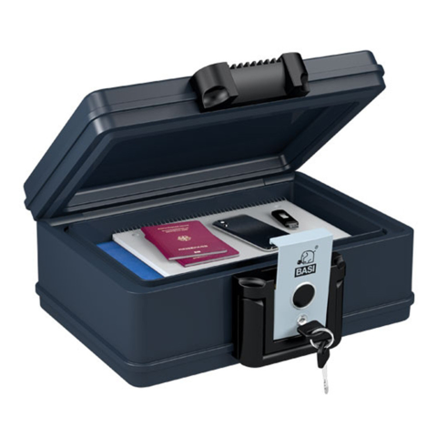 Tűz- és vízálló kazetta •30 perces tűzvédelem •speciális hőszigetelő töltet •körbefutó gumi tömítés •zárható fedél, 2 db kulcs• műanyag hordozó fogantyú•DIN EN 15659 szerint bevizsgálva •845C-on 30 percig 172C alatt marad a belső hőmérséklet •iratok, CD,