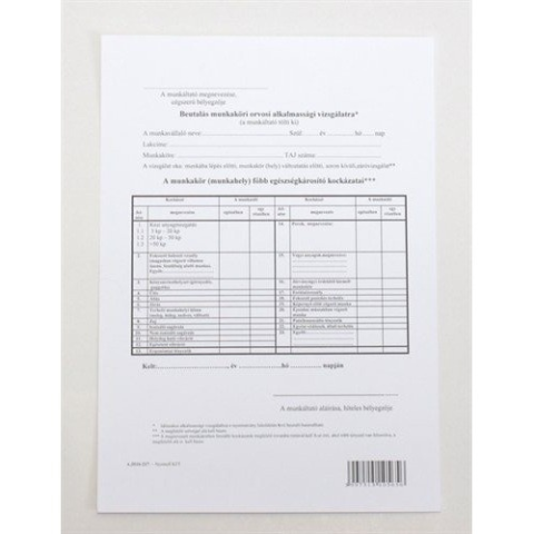 1 kép Basic BEUTALÁS MUNKAKÖRI ORVOSI ALKALMASSÁGI VIZSGÁLATRA A/4