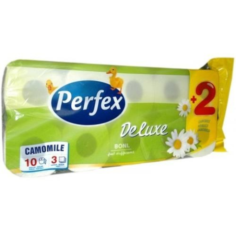 Kiváló minőségű, hófehér, 3 rétegű, 120 lapos, 100% cellulóz wc papír. 10 tekercs/csomag. Kamilla illatú.