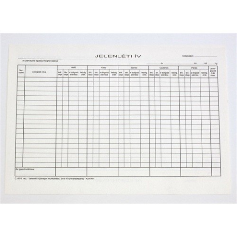 Basic JELENLÉTI ÍV 5 NAPOS A/4 nyomtatvány 1 kép