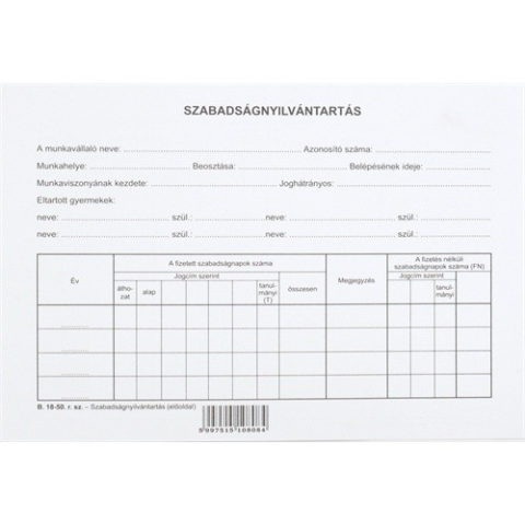 Szabadság nyilvántartólap.