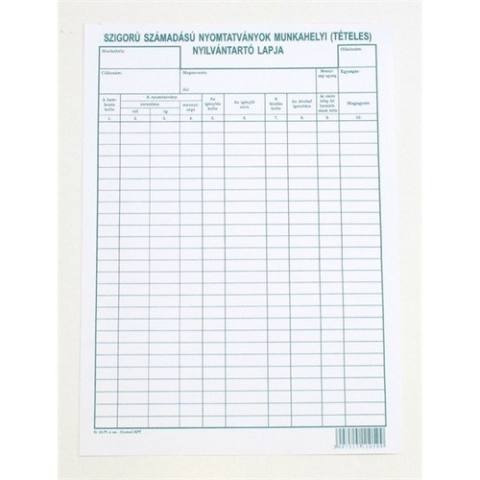 Szigorú számadású nyomtatványok munkahelyi nyilvántartó lapja.