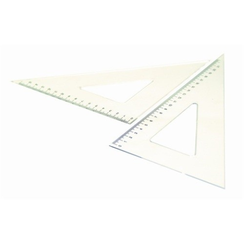 Átlátszó, műanyag, háromszög vonalzó 45 fokos 16 cm élű.