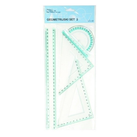 Jó minőségű, 4 db-os víztiszta műanyagból készült vonalzókészlet. Készlet tartalma: 1 db 30 cm egyenes, 1 db 45 fokos háromszög 16 cm-es, 1 db 60 fokos háromszög 23 cm-es, 1 db 180 fokos szögmérő 10 cm-es.
