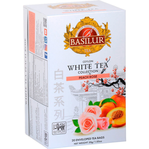 1 kép Basilur White Tea Peach Rose, csomagolt, 20×1,5 g