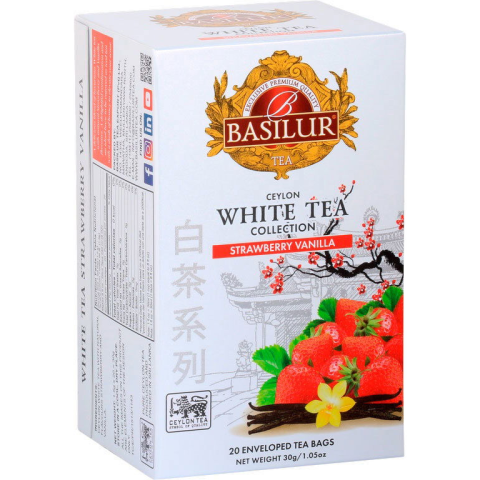 Basilur White Tea Strawberry Vanilla, csomagolt, 20×1,5 g (4792252944947)