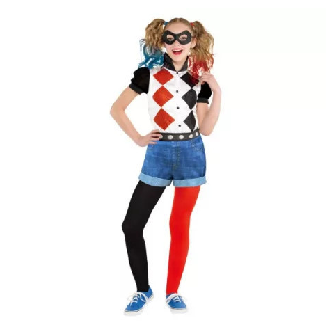 Harley Quinn jelmez 8-10 év Tartozékok: - top - rövidnadrág - leggings - maszk - öv Anyaga: 100% poliészter
